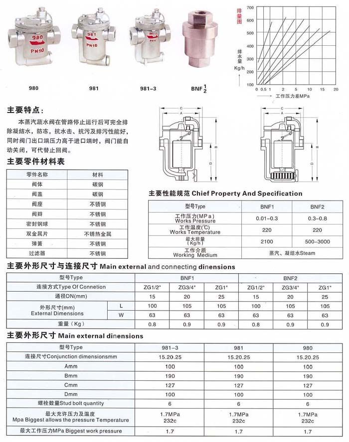 二、熱靜力式蒸汽疏水閥 主要技術參數