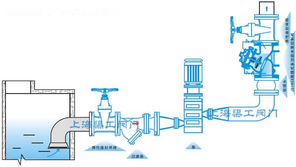 JD745X多功能水泵控制閥的接管系統采用調節閥控制,通過設定調節閥的開度,可方便實現需要的各項控制參數,如主閥的開啟速度、緩閉速度等等。