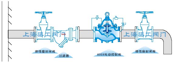 600X電動(dòng)控制閥由主閥、電磁導(dǎo)閥、針閥、球閥、微形過濾器和壓力表組成水力控制接管系統(tǒng)。通過電磁導(dǎo)閥可以實(shí)現(xiàn)對(duì)閥門開啟和關(guān)閉的遙控。加裝附加裝置后,可控制開啟和關(guān)閉的速度。